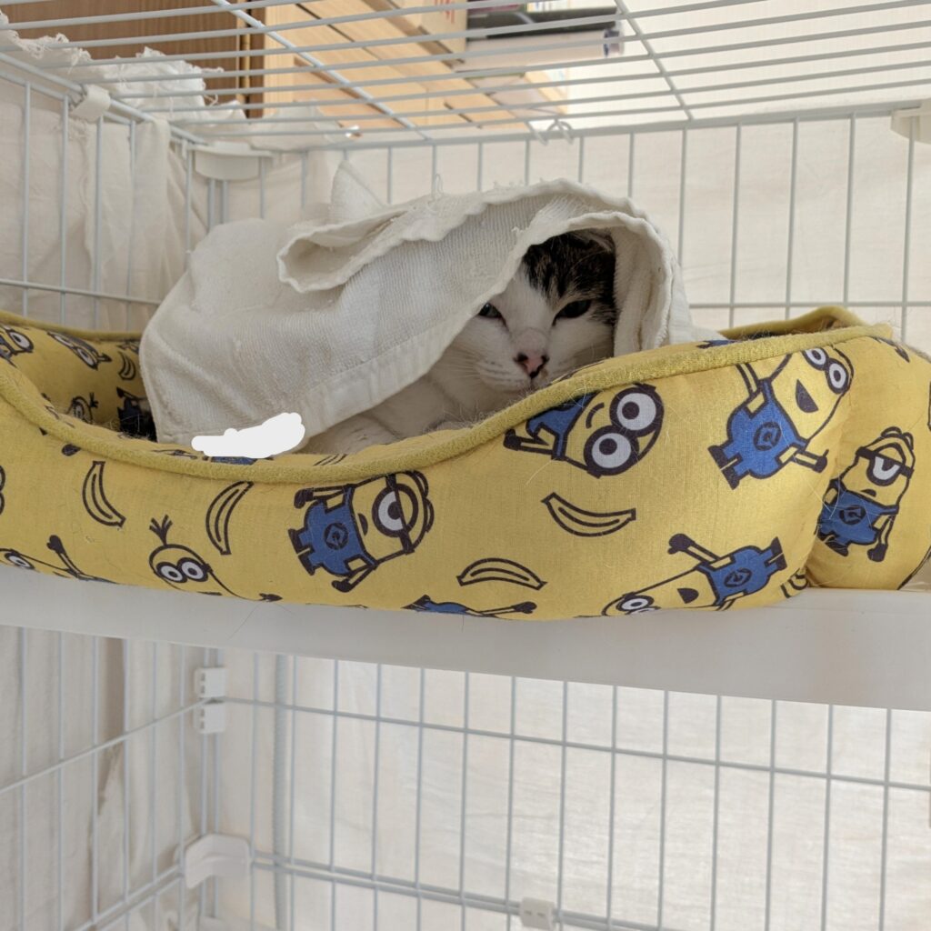 ももちゃん自身も預けられているという事を理解していたのか、ご飯もしっかり食べ、3段ステップのケージの中で大人しく過ごしてくれました。