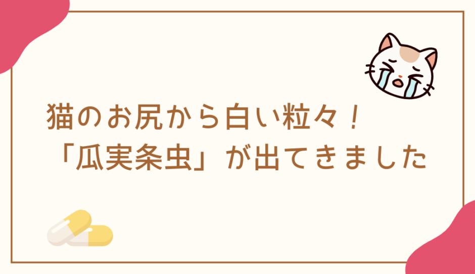 スピカのお尻から、白い粒々の「瓜実条虫」の片節が出てきたんです💦