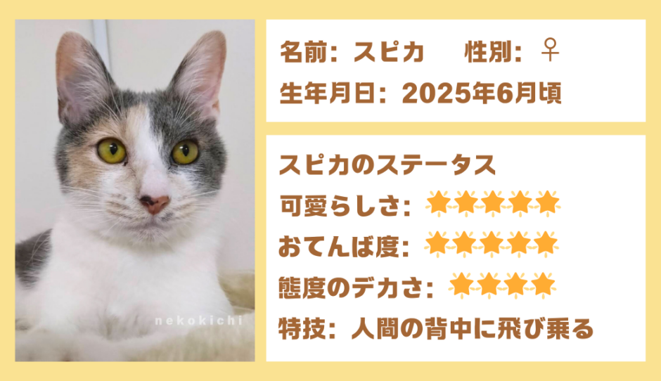 スピカは推定2025年6月生まれ。